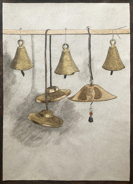 A asculta cu ochii, a vedea cu urechile. Desenele de mai sus fac parte dintr-o serie de 9 lucrări expuse în cadrul proiectului Hörfenster / Ferestre sonore, un dialog între dimensiuni acustice și vizuale desfășurat în spațiul Factory al Künstlerhaus din Viena în martie 2024, proiect realizat în cooperare cu Bruno Pisek. Am lucrat în creion și cu acuarelă naturală preparată de mine în casă. De ce preparată în casă? În pri-mul rând deoarece așa sunt sigură că nu otrăvesc apa cu substanțe toxice de fiecare dată când pun culoare. Dimensiunile fiecărei lucrări: 70×50 cm. Metoda de fixare: lapte degresat aplicat în straturi succesive prin pulverizare fină. Laptele ca element de fixare a desenelor în creion și cărbune era folosit frecvent de unii artiști din trecut, printre aceștia aflându-se și Van Gogh, care se pare că obișnuia să-l toarne direct peste desene. Mai multe informații despre proiectul Hörfenster aici.