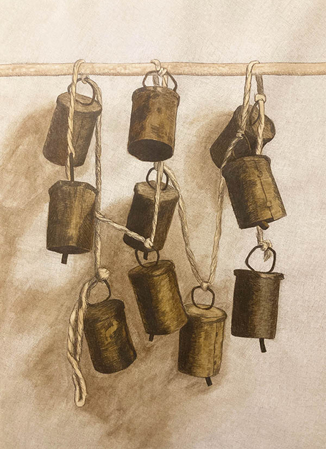 Die obigen Zeichnungen sind Teil einer Serie von 9 Werken, die im Rahmen des Projekts Hörfenster, einem Dialog zwischen akustischen und visuellen Dimensionen, im März 2024 im Factory, Künstlerhaus, in Wien ausgestellt wurden; ein Projekt, das in Zusammenarbeit mit Bruno Pisek realisiert wurde. Ich habe mit Bleistift gearbeitet und mit natürlicher Aquarell-farben, die ich zu Hause selbst gemacht habe. Warum selbstgemacht? Denn so bin ich mir sicher, dass ich das Wasser nicht mit giftigen Substanzen vergifte, jedes Mal wenn ich Farben verwende. Maße je Werk: 70×50 cm. Befestigungsmethode: Magermilch wird in aufeinanderfolgenden Schichten durch feines Sprühen aufgetragen. Milch als Fixiermittel für Bleistift- und Kohlezeichnungen wurde von einigen Künstlern in der Vergangenheit häufig verwendet, darunter auch von Van Gogh, der sie direkt über seine Zeichnungen goss. Mehr zum Hörfenster-Projekt hier.